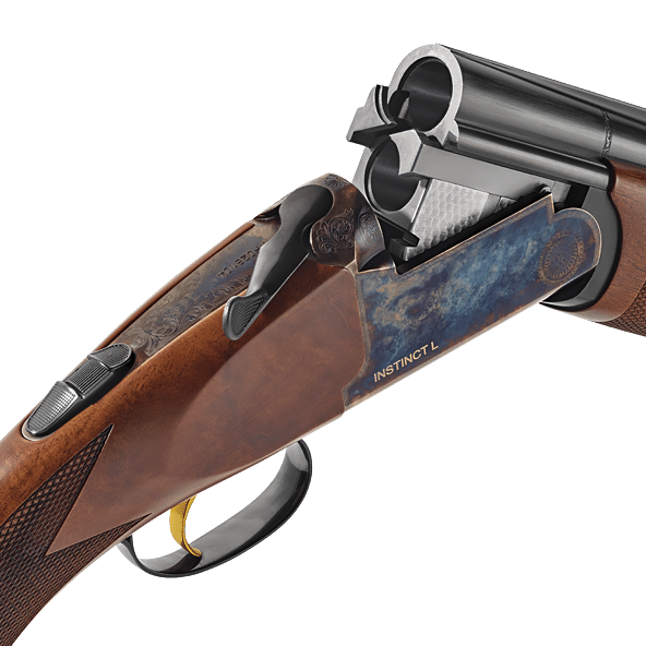 The distinctive receiver includes a tang-mounted automatic safety that also acts as a barrel selector. An attractive gold-plated trigger completes the Instinct L’s stylish look.