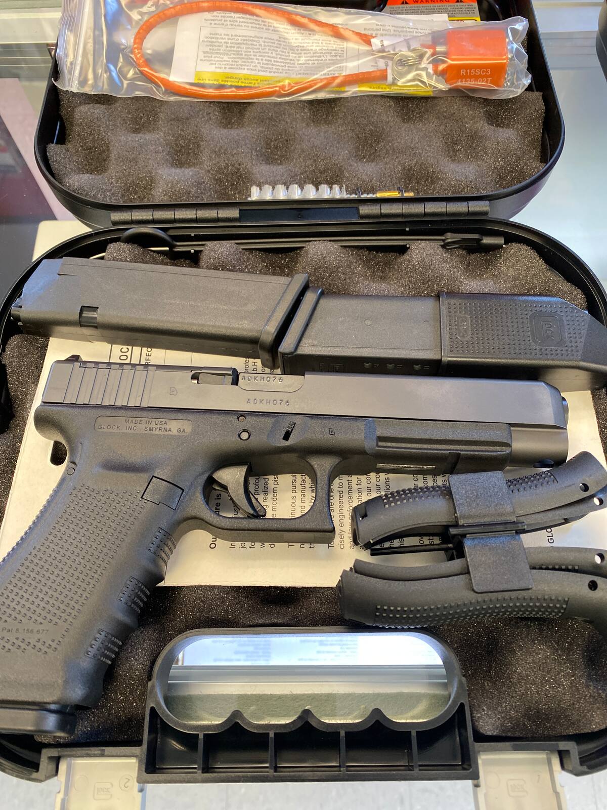 The photos represent the overall condition of these GLOCK 35 GEN 4 MOS 40S&W, which is in good condition. The pistol comes with 3 15-round magazines, as well as the original box.