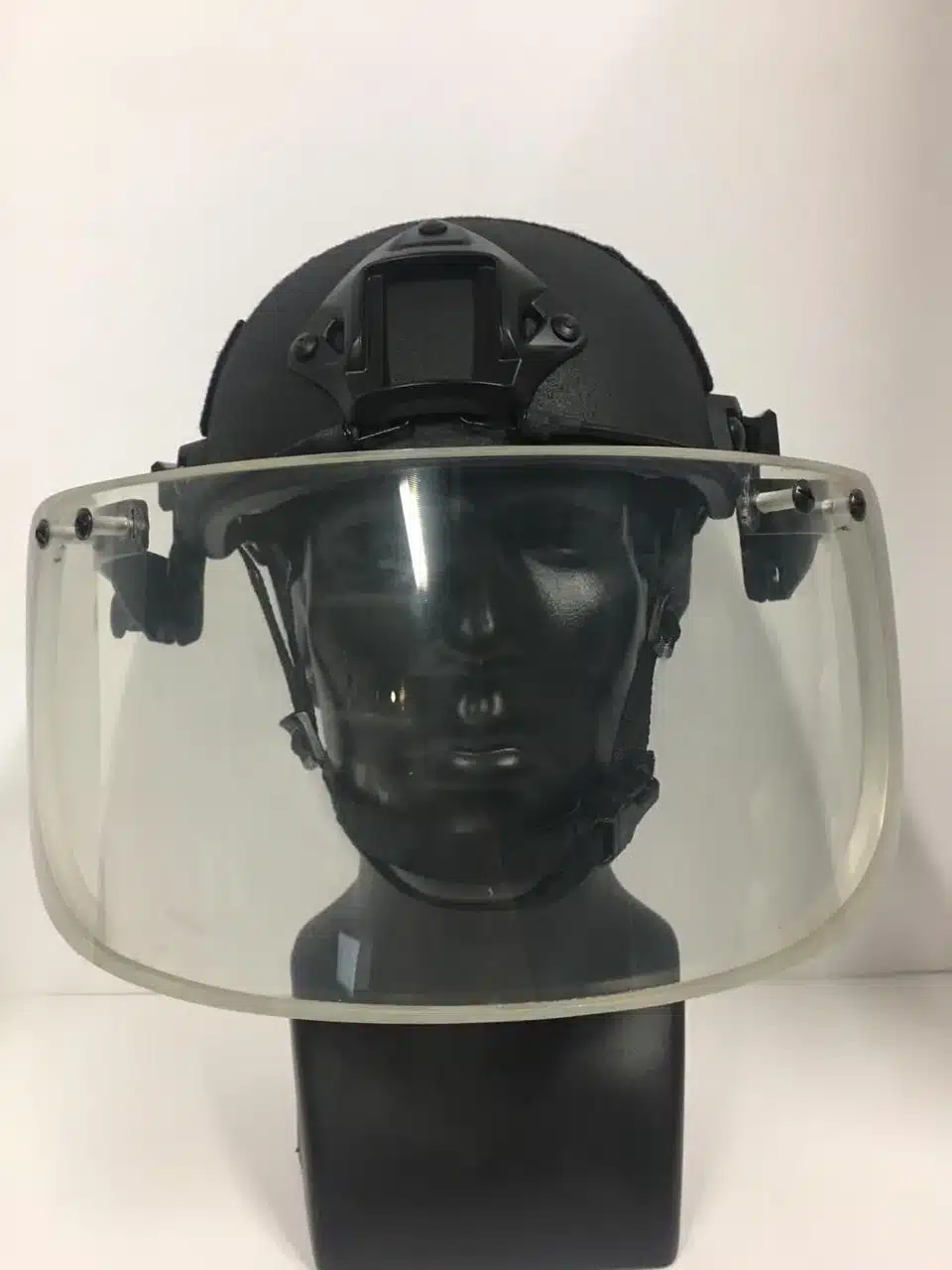 A level 3a ballistic visor. Can withstand up to .44 magnum. Can be mounted on any helmet with ARC rails. Weight: 1.5kg *helmet shown in photos not included.