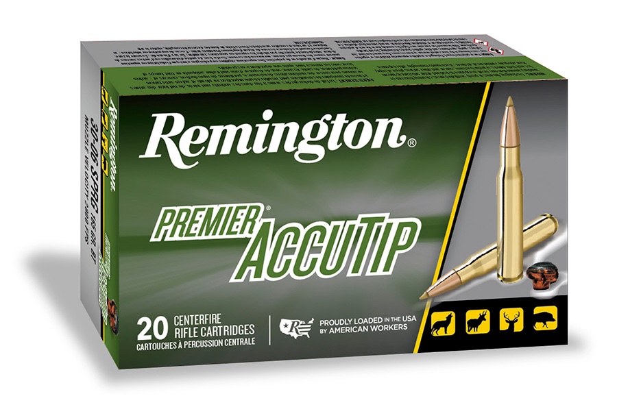 From its polymer tip, to its lead core, Remington Premier Accutip is optimized for match-grade accuracy and stunning on-game performance. Thousands of rounds in development, it combines truer flight, flatter trajectory and devastating terminal energy. No wonder it’s the consistent choice of serious hunters the world over.