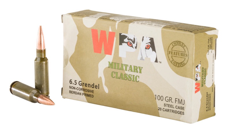 Wolf 6.5 Grendel 100g FMJ steel case ammunition gives very affordable marksmanship training. This ammunition features non-corrosive steel cases; a lead core, bi-metal jacketed projectile; and is Berdan primed. Box of 20.